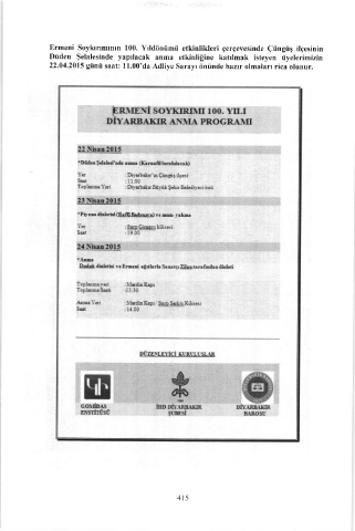 Ermeni soykrrımının l00. yıldönümü etkinlikleri çerçevesinde Çüngüş ilçesinin
