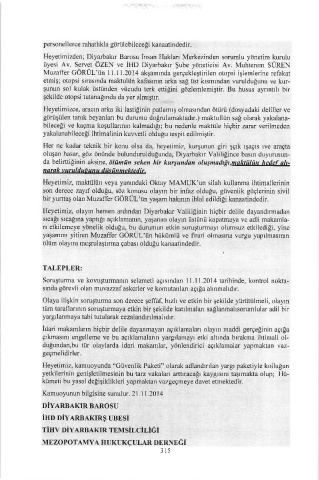 Heyetimizden; Diyarbakır Barosu İnsan Hakları Merkezinden sorumlu yönetim kurulu