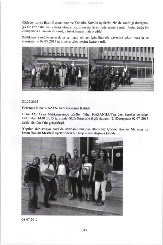 tarafindan 14.01.20|5 tarihinde öldürülmesiyle ilgili davanın 2. Duruşması 02.07.2015