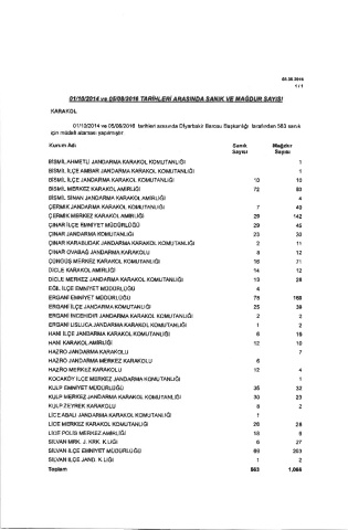 01/1Ci/2014 ve 05/O8nO16 tarihhri arasınde Dlyarbakir Barosı,ı Başkanlığı hrefırdan 563 saruk