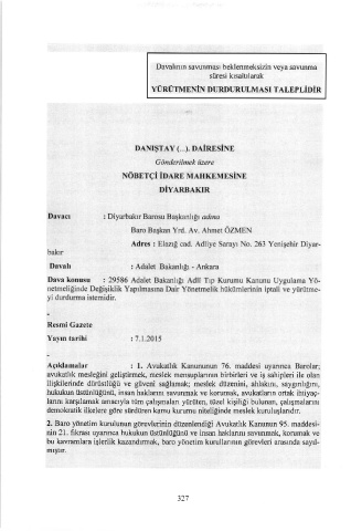 2.Baro yönetim kurulunun görevlerinin düzenlendiği Avukatlık Kanunun 95. maddesi-