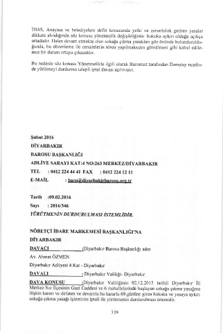 DAVACI :Diyarbakır Barosu Başkanlığı adın