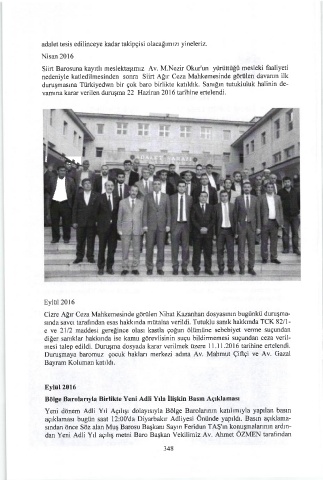 Siin Barosuna kayıtlı meslektaşımız Av. M.Nezir Okur'un yürüttüğü mesleki faaliyeti