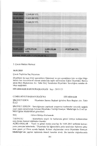 adına Baro Başkanımız Av. Tahir ELÇ İtarafindan Diyarbakır Savcılığına sunulan di-
