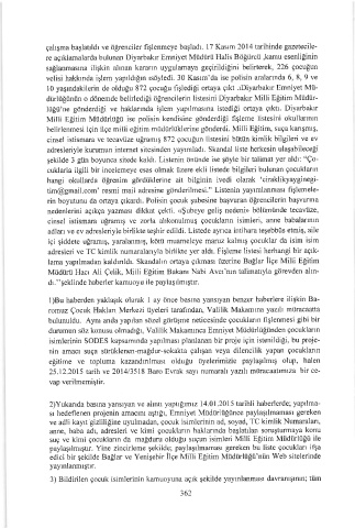 dürlüğünün o dönemde belirlediği öğrencilerin listesini Diyarbakır Milli Eğitim Müdür-