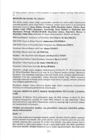 Heyetimiz, sokağa çıkma yasağının kaldırılmasıyla birlikte 04. 07.2016 tarihinde saat