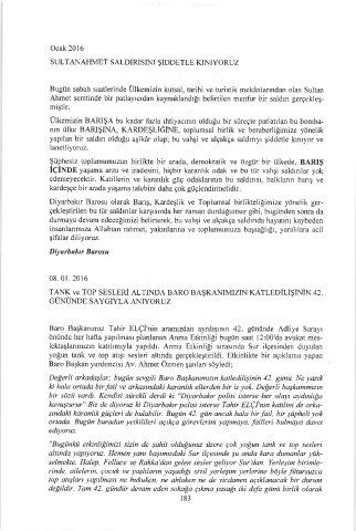 Diyarbakır Barosu olarak Barış, Kardeşlik ve Toplumsal birlikeliğimize yönelik ger-