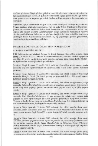 yitirdiğini l7 sivilin yaralandığını tespit etmiştir. Meydana gelen yaşam hakkı ihlalleri-