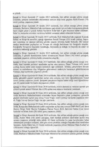 Sımak'ın Silopi ilçesinde 01 Ocak 2015 tarihinde, ilan edilen sokağa çıkma yasağı sıra-
