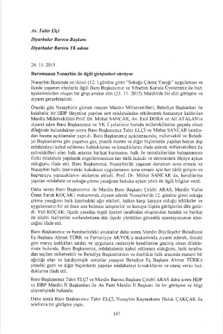 olduğunu ifade etti. Baro Başkanımız, Nusaybin'de yaşanan durumun sona ermesi ve