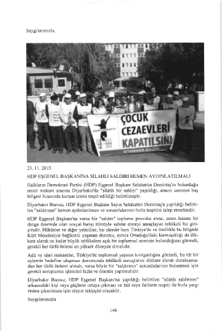 Diyarbakır Barosu, HDP Eşgenel Başkanı Sayın Selahattin Demirtaş'a yapıldığı belirti-