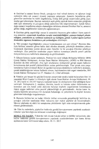 Çocuk Hakları Sözleşmesi'nin 37. Maddesi vb. ) ihlal edilmiştir.