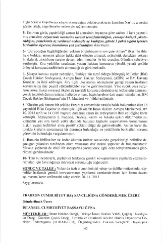 Çocuk Hakları Sözleşmesi'nin 37. Maddesi vb. ) ihlal edilmiştir.