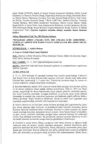 Araştırmaları Vakfı (Sayılan örgütleri temsilen dilekçe sonunda imzası bulunan