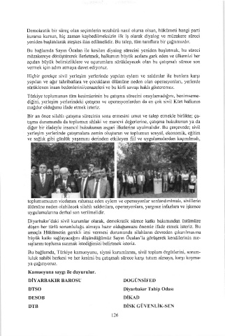 Bir an önçe silahlı çatışma sürecinin sona ermesini umut ve talep etmekle birlikte; ça-