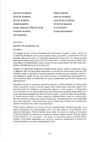 Biz aşağıda isimleri bulunan Diyarbakır'daki sivil toplum örgütleri olarak, Türkiye'de