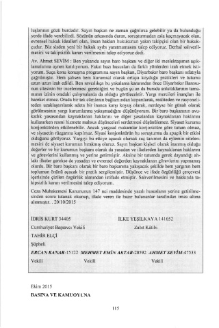ILKE \aEŞILKAYA |41652 zabıt katibi ERCAN KANAR-|5|22 MEHMET EMLN AKTAR-20592 AHMET SEııiıı-qısıı Vekili Ekim 2015 BASINAVE KAMUOYUNA 1l5