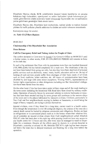 Diyarbakır Barosu olarak, KCK yetkililerinin insancıl hukuk kurallarına ve çattşma