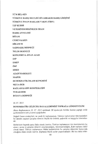 süreci, savaş ve çatrşma sürecini onaylamadığını, benimsemediğini, Kürt toplumu dahil