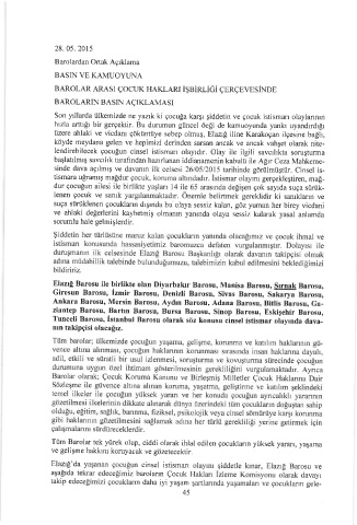 Tüm Barolar tek Yürek olup, ciddi olarak ihlal edilen çocukların yüksek yiırarı, yaşama