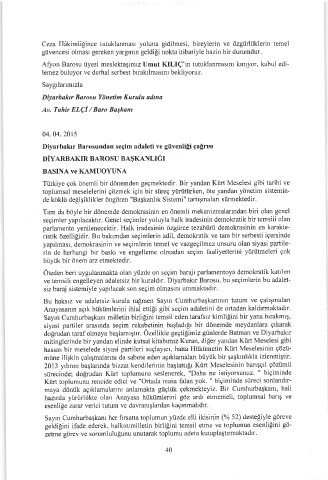 ve temsili engelleyen adaletsiz bir kuraldır. Diyarbakır Barosu, bu seçimierin bu adalet-