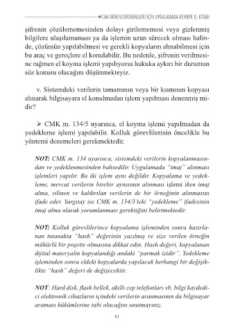 yedekleme işlemi yapılabilir. Kolluk görevlilerinin öncelikle bu