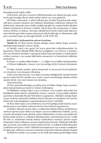 Madde 53- (1) Ki¸si, kasten i¸slemi¸s oldu˘gu suçtan dolayı hapis cezasına