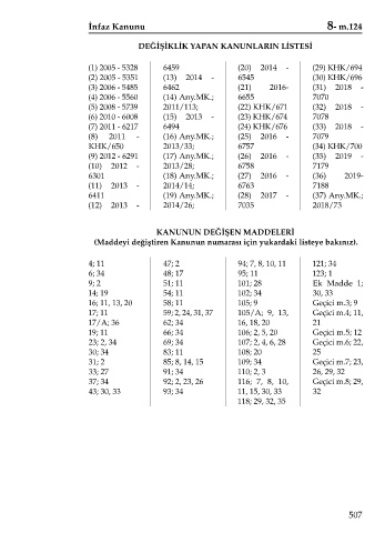 (Maddeyi de˘gi¸stiren Kanunun numarası için yukardaki listeye bakınız).