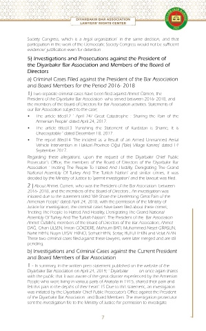 Page 29 - 2020 Yılında Diyarbakır Barosu Başkanı, Yönetim Kurulu ve Baro Üyesi Avukatlara Yönelik Soruşturma ve Kovuşturmalara Dair Rapor