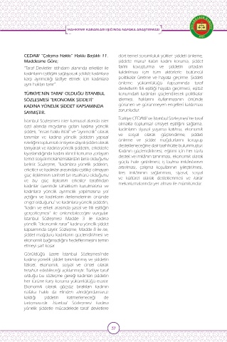 belirtir. Sözleşme, “kadınlara yönelik şiddetin, güçlü hale getirilmesi, iş bulma imkânlarının