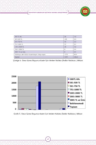 Çizelge 6. Dava Süresi Boyunca Kadın İçin Verilen Nafaka (Tedbir Nafakası ) Miktarı