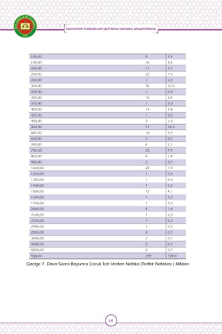 500,00 71 24,3 Çizelge 8. Dava Süresi Boyunca Çocuk İçin Verilen Nafaka (Tedbir Nafakası )