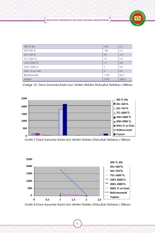 Çizelge 10. Dava Sonunda Kadın İçin Verilen Nafaka (Yoksulluk Nafakası ) Miktarı