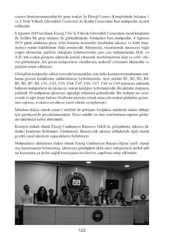 ile birlikte bir grup mahpus ile görüşülmüştür. Görüşülen bazı mahpuslar, 4 Ağustos