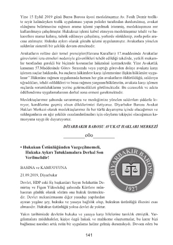cına atılmıştır. Hukuka aykırı olarak gözaltı işlemi uygulanmıştır. Avukatlara yönelen