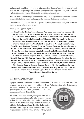 Trabzon Barosu, Tunceli Barosu, Uşak Barosu, Van Barosu, Yalova Barosu,