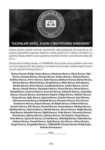 Sivas Barosu, Şanlıurfa Barosu, Şırnak Barosu, Tekirdağ Barosu, Tokat Barosu,