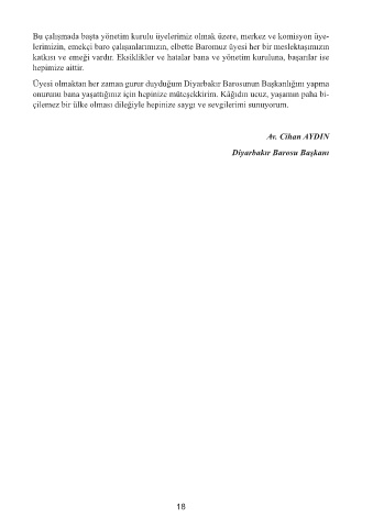 Üyesi olmaktan her zaman gurur duyduğum Diyarbakır Barosunun Başkanlığını yapma