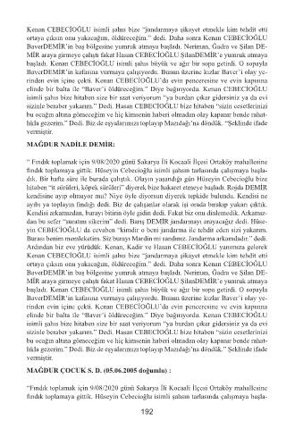 ortaya çıksın onu yakacağım, öldüreceğim.” dedi. Daha sonra Kenan CEBECİOĞLU
