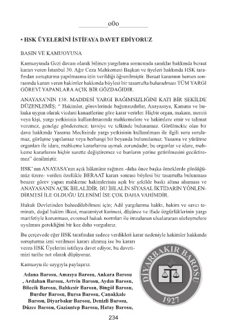 • HSK ÜYELERİNİ İSTİFAYA DAVET EDİYORUZ