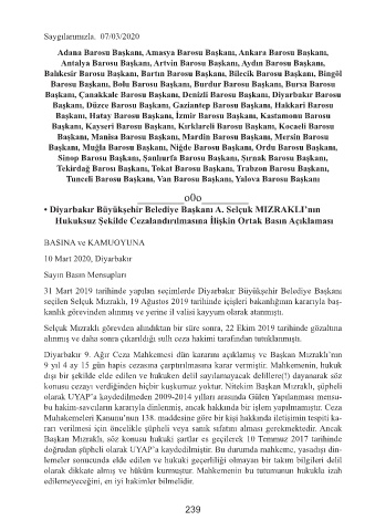 • Diyarbakır Büyükşehir Belediye Başkanı A. Selçuk MIZRAKLI’nın