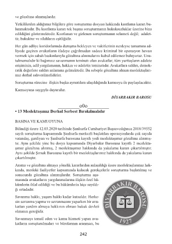 ratik değerlere saldırı anlamına gelmektedir. Bu sebeple gözaltına alınan meslektaşları-