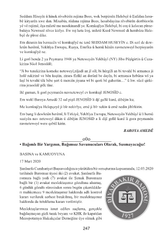 Em wekî Baroya Amedê 32 sal piştî JENOSÎD li djî gellê kurd, dibêjin ku;