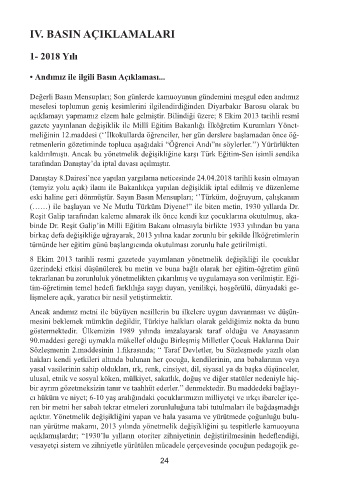 Değerli Basın Mensupları; Son günlerde kamuoyunun gündemini meşgul eden andımız