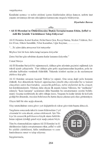 öldürdü. Son dönemlerde Suriyeli sığınmacılara yönelik ırkçı söylemler bu ve benzeri