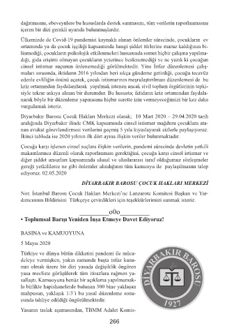 Diyarbakır Barosu Çocuk Hakları Merkezi olarak; 10 Mart 2020 – 29.04.2020 tarih