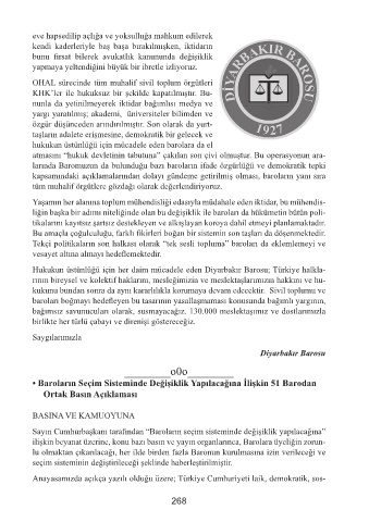 larında Baromuzun da bulunduğu bazı baroların ifade özgürlüğü ve demokratik tepki