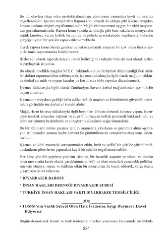 engellenmekte, işkence mağdurları Rapora konu olayda da olduğu gibi işkence mağdur-