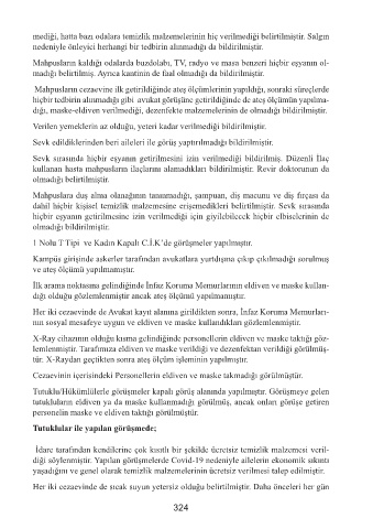 mediği, hatta bazı odalara temizlik malzemelerinin hiç verilmediği belirtilmiştir. Salgın