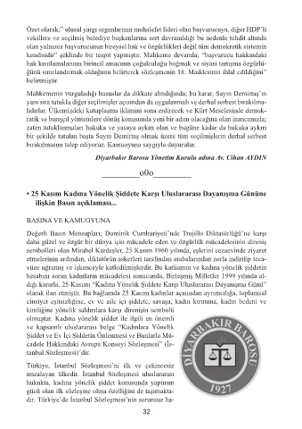 Diyarbakır Barosu Yönetim Kurulu adına Av. Cihan AYDIN